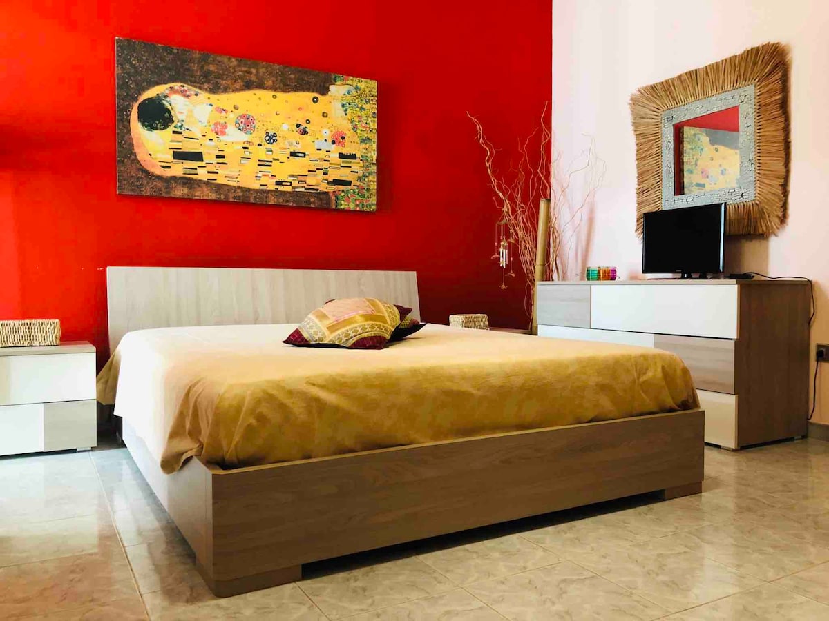 Elegante appartamento, di recente ristrutturazione, arredato con gusto e in maniera funzionale per viaggiatori da tutto il mondo. Ampia sala da pranzo,TV, wi-fi, ventilatore da sofitto, angolo cottura, divano, microonde, bagno con doccia, vano lavatrice, camera da letto con TV condizionatore Spazio esterno con Pergolato attrezzato, possibilità di accesso al terrazzo illuminato con angolo frigo, tavolino e sedie. Nelle vicinanze sono presenti supermercati, ristoranti, farmacia, parrucchieri ecc.