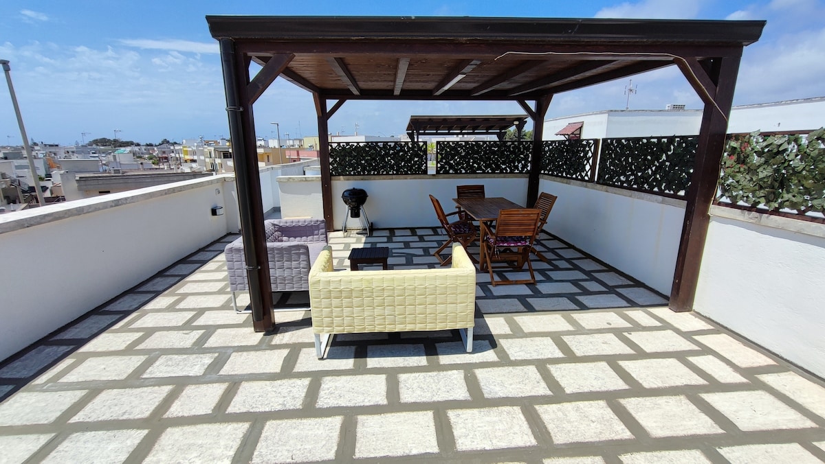 Luminoso appartamento con terrazza VISTA MARE a soli 100mt dalle splendide spiagge di Gallipoli. Posto al 3° e ultimo piano, appena ristrutturato e direttamente sul LUNGOMARE, l'appartamento offre servizi TOP per una vacanza indimenticabile: *ampia TERRAZZA PRIVATA dove godere di splendidi tramonti vista mare, facendoti cullare dall'amaca e dalla brezza marina, *comodo BALCONE per le tue colazioni all'aperto, *spiaggia di SABBIA a piedi, *posizione CENTRALISSIMA, *BOX AUTO privato gratuito