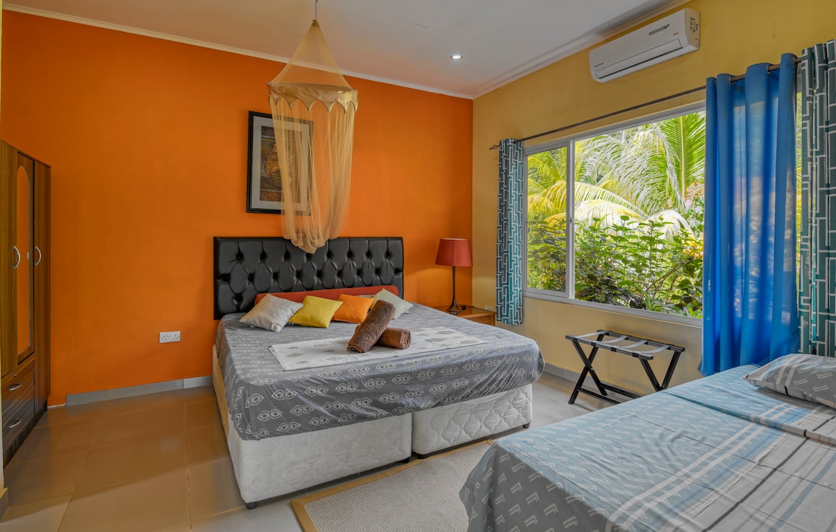 Watch the sunset right from your balcony with spectacular views over Anse La Mouche, 1km away. Situated in the south and close to some of the best beaches on Mahe, this holiday home offers free internet, Smart TV (Netflix, Youtube, GooglePlay). We are a small, friendly, Seychellois family-owned business, who can guide you to have the best holiday here in Seychelles. We offer discounted airport transfer rates for our clients, so be sure to book for a hassle-free arrival and departure.