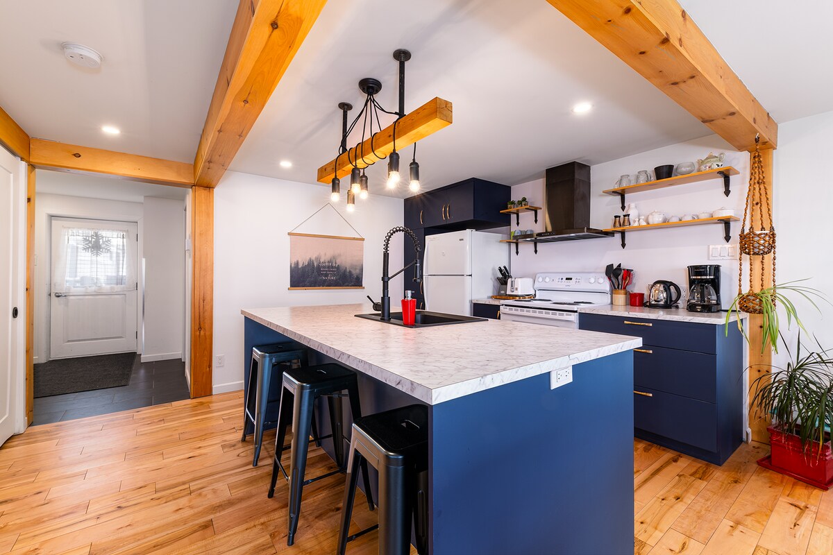 Experience 7 years of Superhost excellence in this modern Charlevoix haven. Perched on a mountain, our Zen retreat features forest-level windows and high-speed Fiber Optic internet. Just 10m from the top of Le Massif, 15m from the bistros and galleries of Baie-St-Paul and 1h from Quebec City. Enjoy "Northern Coziness" in a spacious living area designed for quality time. Ideal for quiet escapes; no parties or events. Your mountainside sanctuary for relaxation and exploration awaits. CITQ #298792