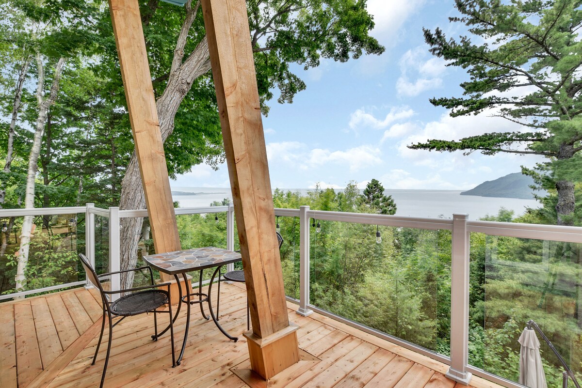Hidden in beautiful Charlevoix, nestled in the Laurentian mountains and overlooking the St. Lawrence river is Chalet Le128. Bright, spacious & comfortable with a one-of-a-kind picture perfect views from every window. Enjoy incredible skiing at nearby Le Massif, explore hiking trails along the river and mountains, taste local delicacies and and peruse the galleries of nearby Baie Saint Paul. Relax in the hot tub, BBQ on the private deck & rest in the 2 generous bedrooms. Vaulted ceilings!