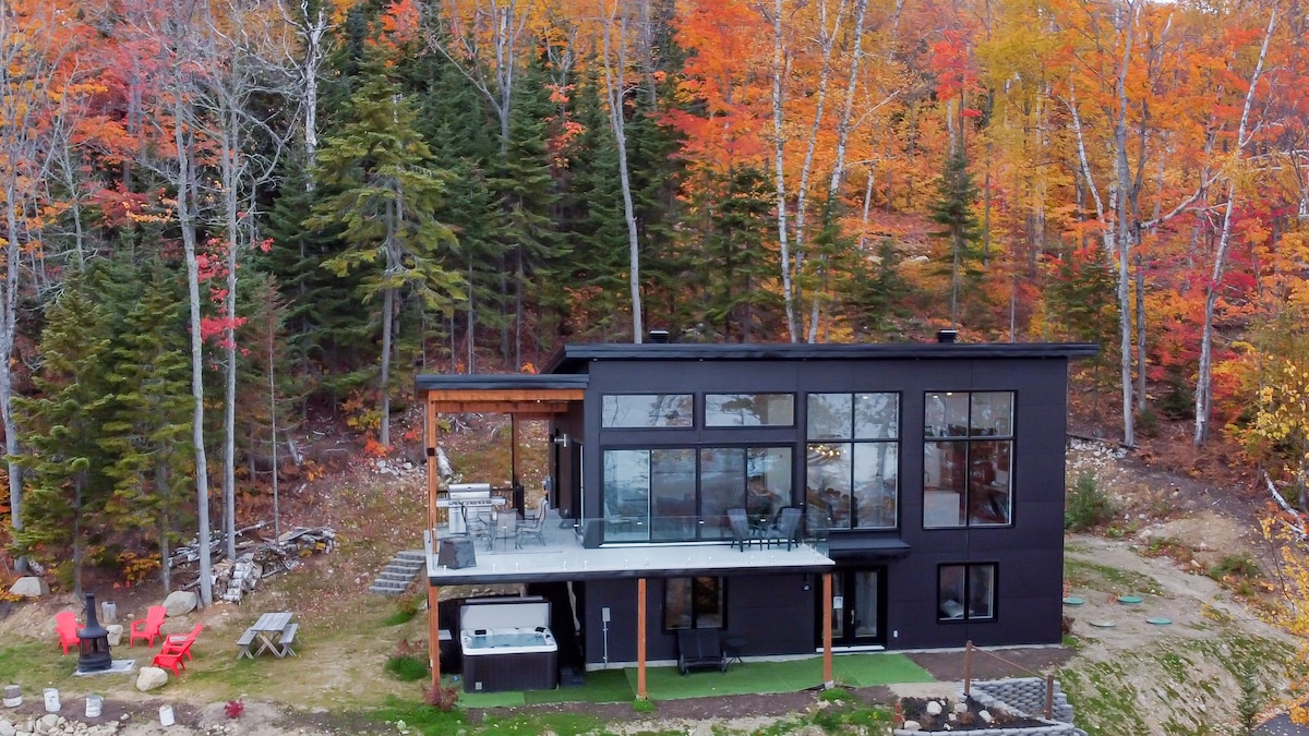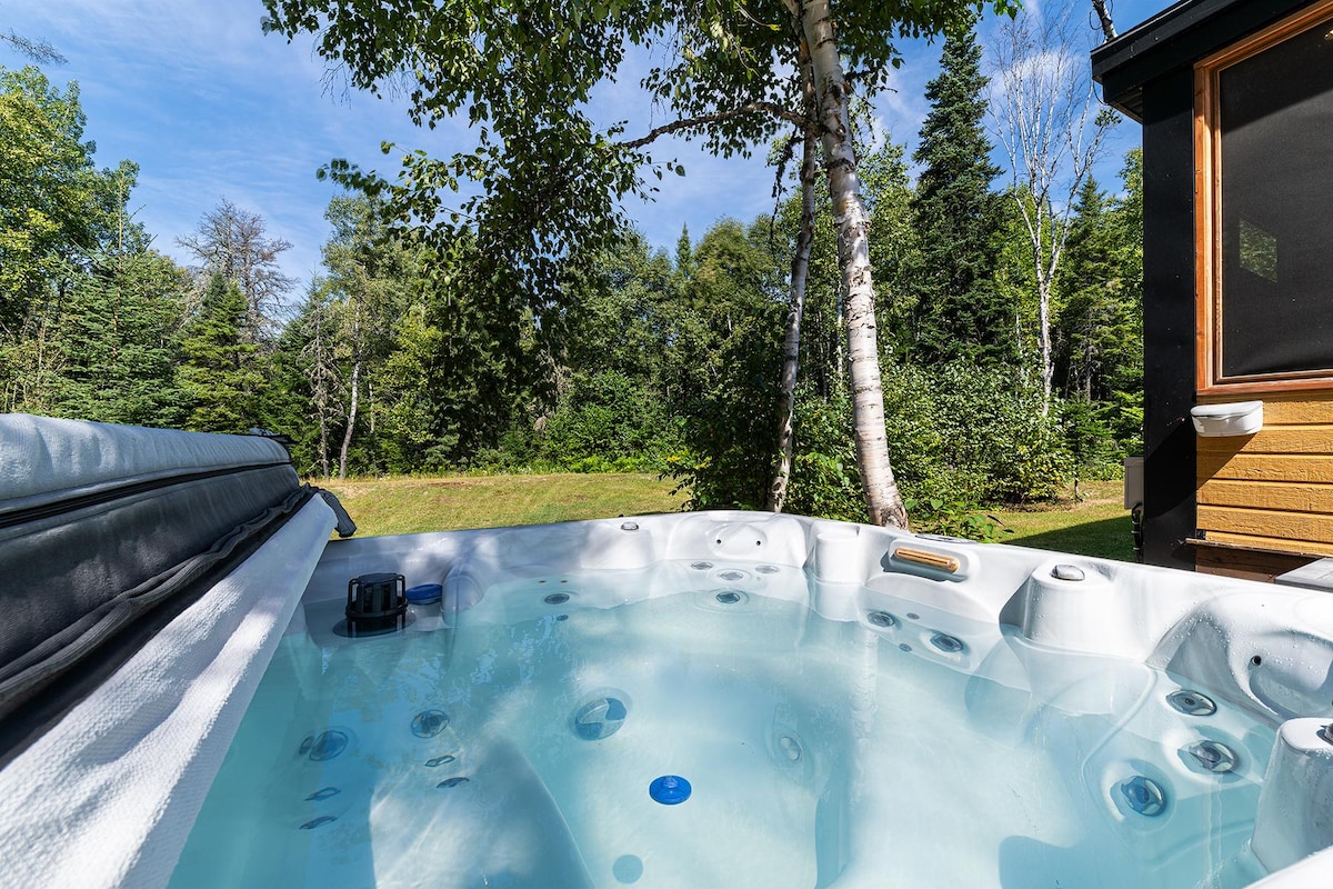 Small Scandinavian chalet for two people ideally located to enjoy the attractions of Charlevoix. It has a thermal circuit (hot tub, sauna, hammam) Very intimate and in the middle of the woods, the view overlooks the majestic river and the mountains in the distance. All the modern equipment is there and the comfort is absolute A/C and outdoor fireplace. The open concept design was designed for an immersive experience in nature: large windows, panoramic shower. Access via a private road at 500 m.