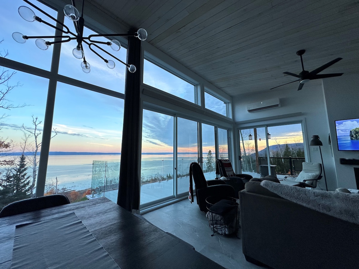 Experience 7 years of Superhost excellence in this modern Charlevoix haven. Perched on a mountain, our Zen retreat features forest-level windows and high-speed Fiber Optic internet. Just 10m from the top of Le Massif, 15m from the bistros and galleries of Baie-St-Paul and 1h from Quebec City. Enjoy "Northern Coziness" in a spacious living area designed for quality time. Ideal for quiet escapes; no parties or events. Your mountainside sanctuary for relaxation and exploration awaits. CITQ #298792