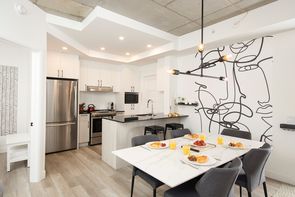 Come and enjoy an unforgettable stay in the heart of the Saint-Roch district in Quebec City in this modern and luxurious condo. You will be charmed by both its common areas and its refined interior design. ✧️ Parking space provided ✧️ Roof terrace with pool, dining area & outdoor fireplace ✧️ BBQ available year-round on the rooftop. ✧️ Fully equipped gym ✧️ Bright and comfortable apartment ✧️ High-speed Wi-Fi and dedicated workspace ✧️ Only a 15-minute walk to Old Quebec
