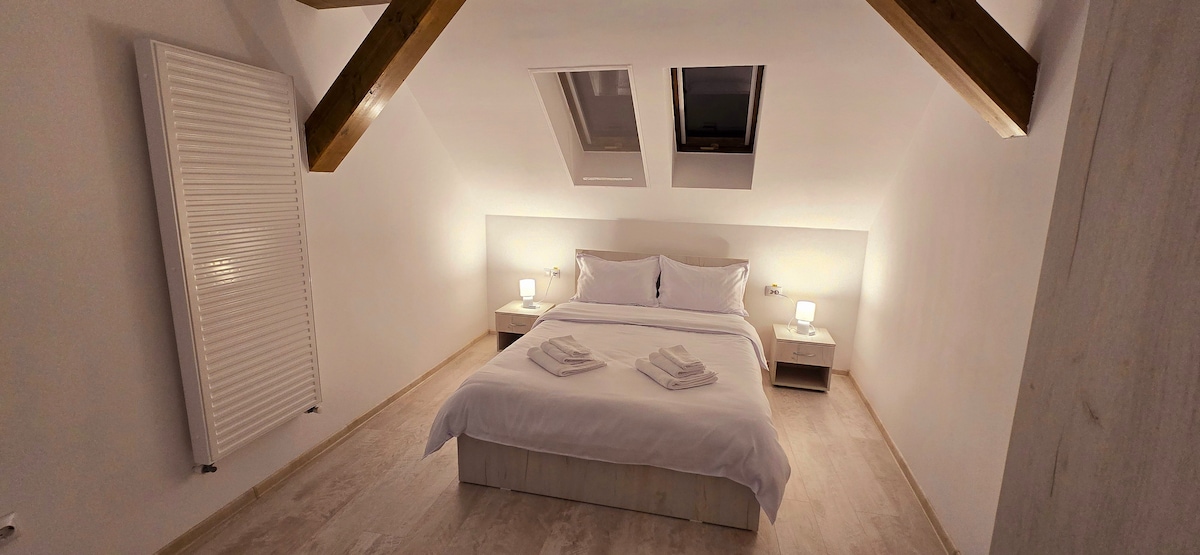 Un apartament de lux, potrivit și celor mai pretențioși turiști! Situat chiar în centrul Bistriței, la câțiva pași de majoritatea obiectivelor turistice, restaurantelor și cafenelor din zona istorica a orașului, apartamentul a fost recent amenajat, cu finisaje și dotări de cea mai bună calitate. Un dormitor de vis, unde să vă odihniți, o bucătărie complet utilată, și, bonus, poziționarea în inima orașului, într-o zonă liniștită, cu loc de parcare asigurat.
