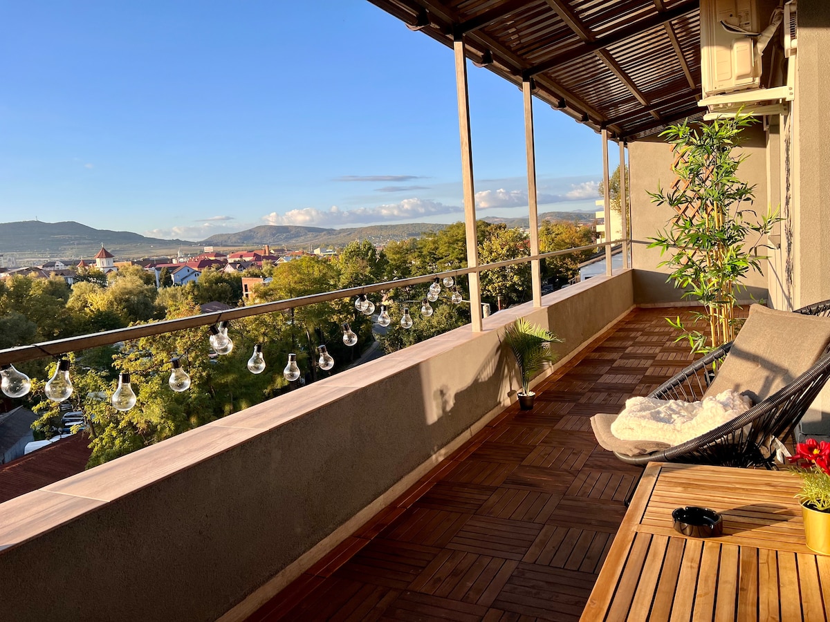 Completely restored apartment located across the street, across from the Evangelical Church, the historical symbol of the city. It is located in the immediate vicinity of the pedestrian zone, about 2 minutes, in the Central Market, at the point of convergence of numerous trails and touristic passages offering the opportunity to explore these routes from the old Medieval Cetate. The location has modern high-quality finishes, a generous terrace to relish the Bistrita medieval atmosphere.