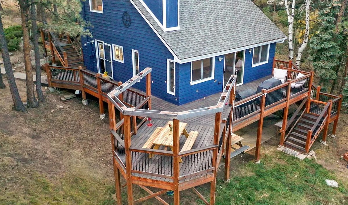 Escape to 2 acres of private mountain land in this peaceful and spacious Conifer retreat. Enjoy stunning views from multiple decks, including a detached rock-top deck perfect for yoga or meditation. Unwind in the hot tub, gather in the game room, or stream on two Smart TVs. Full privacy with no neighbors, just 10 minutes to dining and shops, and a short drive to Red Rocks and downtown Denver. Top Amenities: • Hot tub • Game room • Two Smart TVs • Fire pit • 2-acre private lot • 2-car garage