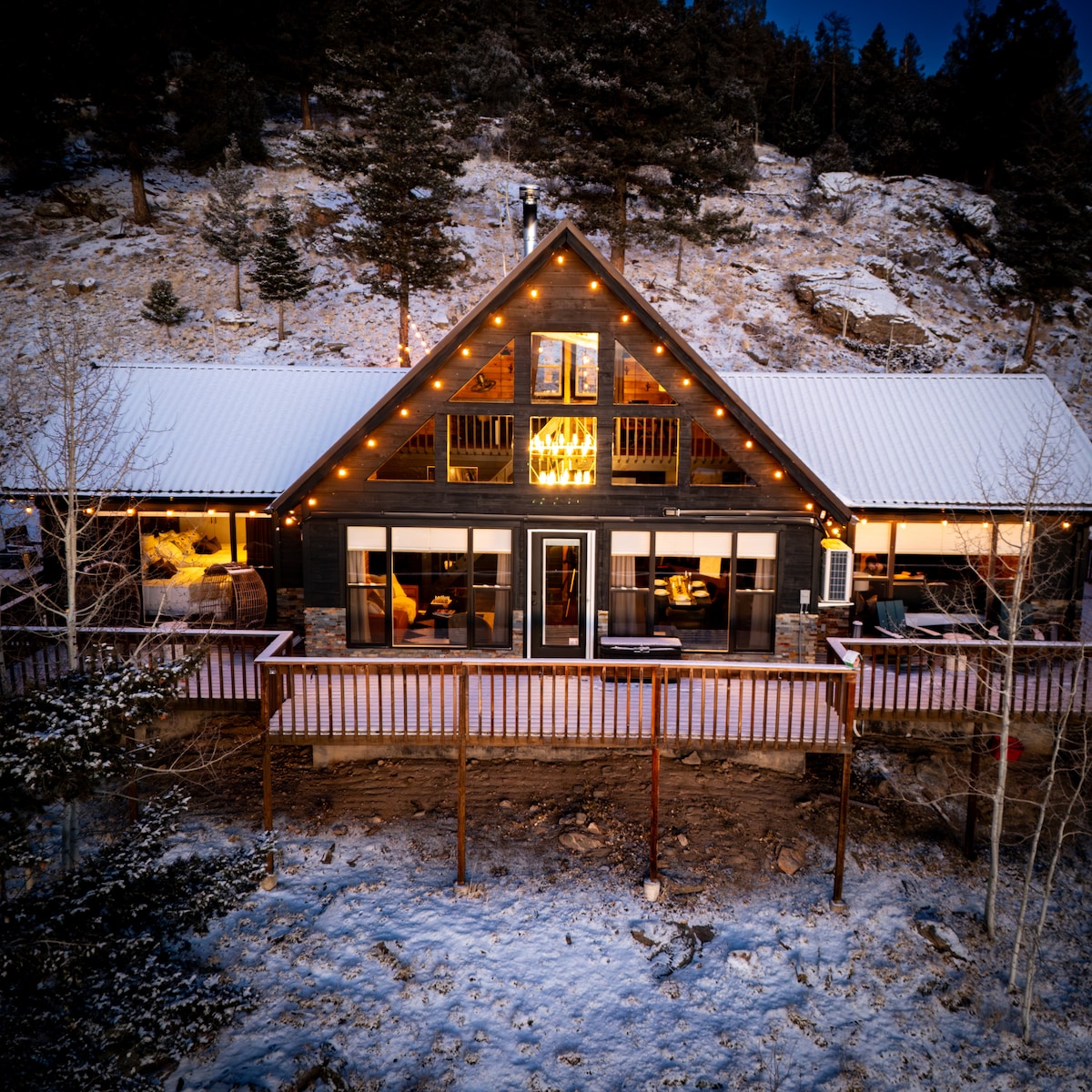Recharge at the Hygge Chalet on 3.5 wooded acres with incredible views of the Rocky Mountains. The eco-friendly A-frame is inspired by hygge, a Danish sense of coziness & simple pleasures. An outdoor Finnish sauna, Norwegian fireplace, hammocks, EV charger, large wraparound deck, warm beverage bar, and luxury beds create a perfect cozy vibe. Explore a private hiking trail that goes from our property for miles into National Forest. Relax, refocus, & reconnect in this uniquely curated experience.