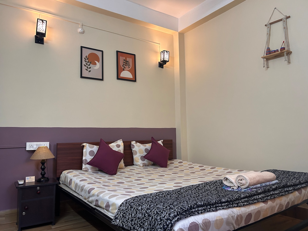 Welcome to our cozy and thoughtfully designed 3-room apartment, perfect for families, groups, or remote workers! Each bedroom features a comfortable queen bed, ceiling fan, wardrobe with locker, and its own unique vibe Room 1: Entertainment room with TV Room 2: The only room with AC workspace & story books Room 3: Recreational space to relax or stretch Enjoy a functional kitchen, high-speed WiFi, a common area with both Indian & western toilets, separate bathroom with geyser, and free parking!
