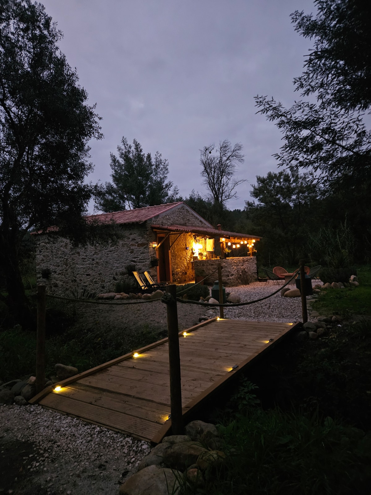 Escape to our enchanting 19th-century stone watermill located in 5 acres of nature, nestled in the valley at the foot of the Serra da Lousa in the peaceful village of Foz de Arouce. Relax by the river which is just metres from your door, experience paddle boarding, fishing or swim in the crystal clear waters and watch the bright stars in the night skies. Perfect location for hiking, mountain biking, sight seeing, relaxation.