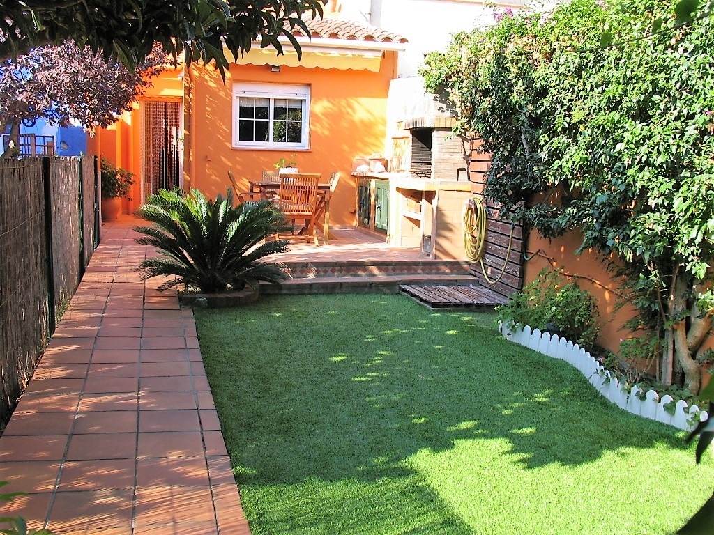 SHARED GARDEN WITH 6 OUTDOOR HOT WATER SHOWERS AND 4TOILETS . 60 m2 house with a 60 m2 fenced garden at the entrance of the house with tables and chairs for 8, sun loungers and barbecue, 35 meters from La Fosca beach. Living room with sofa bed, TV, dining room for 6. The house has three double bedrooms, kitchen, bathroom with shower and a community garden of 3,500 m2. where they can park 1 car.