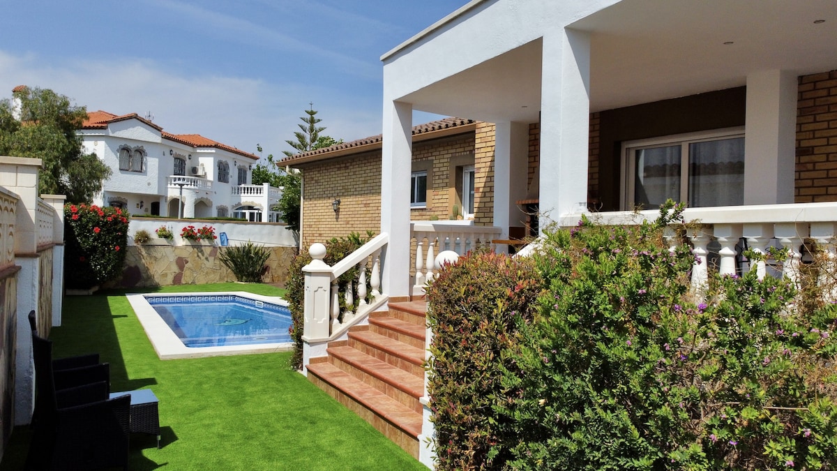 This 3 bedroom/2 bathroom villa has recently been renovated and the pool (8 by 4m with internal stairs) is brand new. There is a aircon-unit (cooling and heating) in the living area and in each bedroom. The property is located next to the natural park Sierra D'Irta in the most quiet area of Alcossebre, but still close to bars, restaurants, beaches and center. As reference check out our other villa on Airbnb: proprty number 22478778