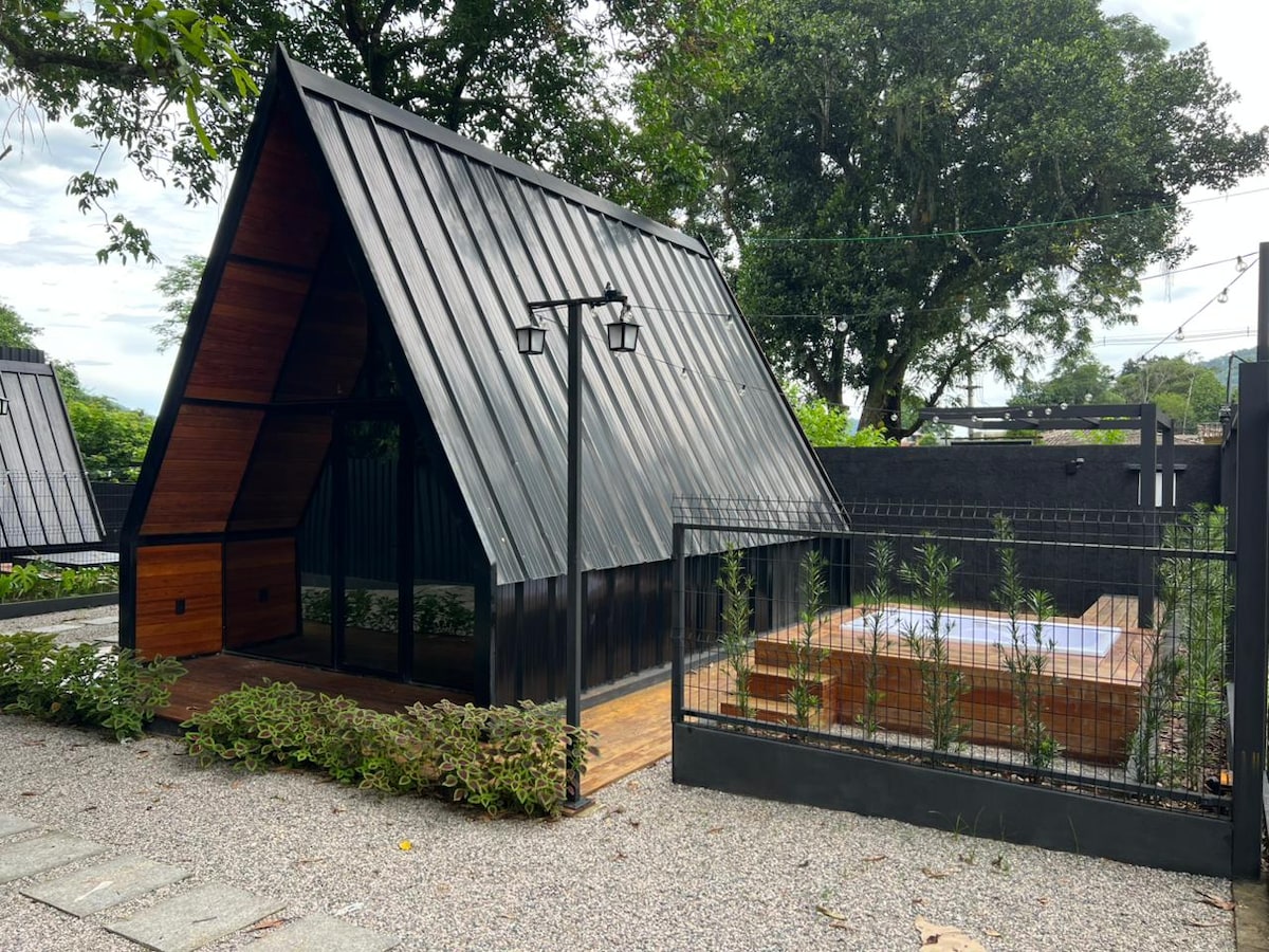 Desfrute de uma experiência única na primeira Cabana A-frame do Rio de Janeiro, totalmente abastecida por energia solar off-grid. Este refúgio exclusivo está localizado no Polo Gastronômico do Rio da Prata, em Campo Grande, próximo a belas cachoeiras e encantadoras cafeterias. Nossa cabana combina design moderno e elegante com uma arquitetura que valoriza o charme rústico, proporcionando uma estadia acolhedora e sofisticada. Aproveite esse momento para relaxar, recarregar e encontrar a paz!