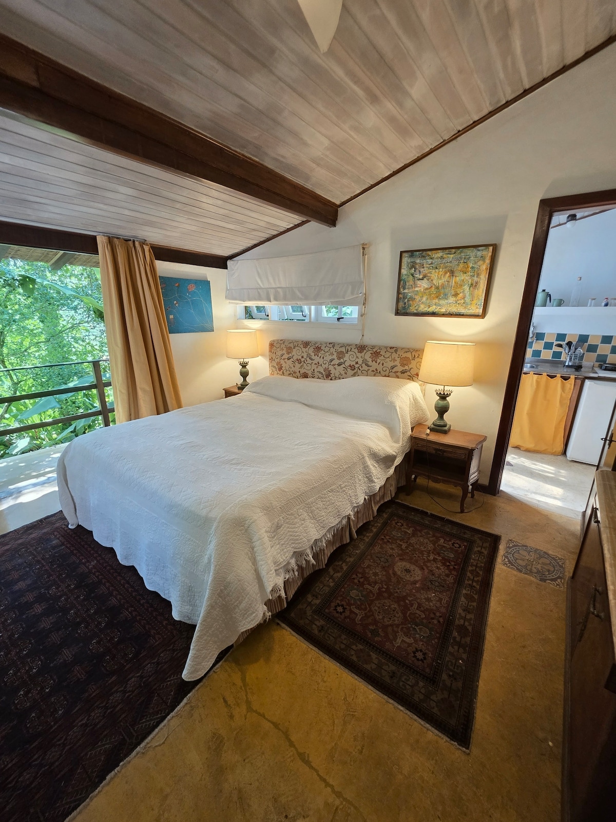 Exclusive retreat in Barra de Guaratiba. Private hot tub, stunning views, hammock and eco-friendly outdoor fireplace in your own outdoor area. Renovated studio with KING bed, Smart TV, fully equipped kitchen and washing machine. Attached to a house but fully private, with independent entrance. Two parking spaces and 24h security in a gated community. Ideal for couples seeking comfort, privacy and charm in one of Rio’s most peaceful areas. No loud music outdoors.