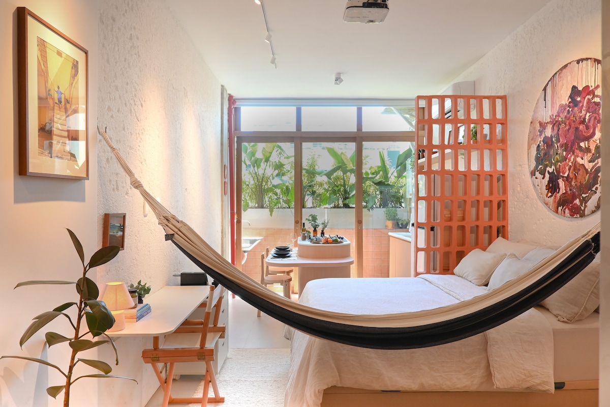 Siga em @marte.copacabana. Recém reformado, a 100mt da praia de Copacabana, altura do posto 5, há poucos minutos a pé do Arpoador e Ipanema. Studio funcional para até 3 pessoas, totalmente equipado com ambientes integrados: cozinha, banheiro e dormitório de altíssimo padrão. Cozinha com ilha e fogão (4 bocas) geladeira, airfryer e utensílios, perfeita para quem ama cozinhar. Para o conforto: split, Projetor Epson, cama de casal, roupa de cama de linho, máquina de expresso e Alexa.