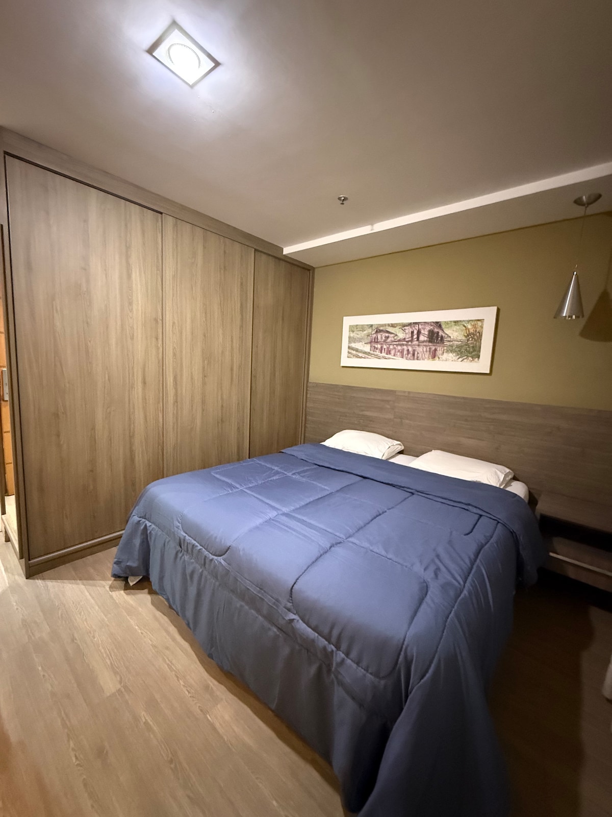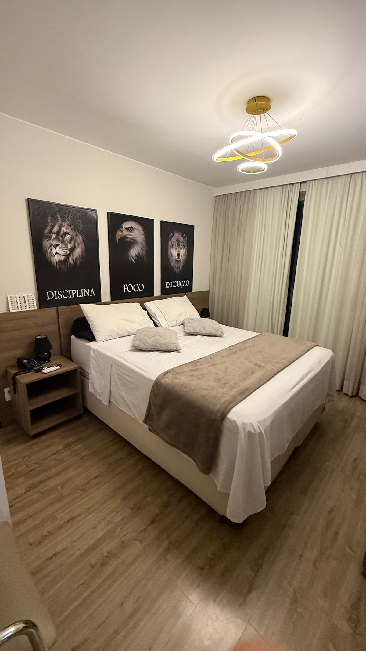 Ampla e confortável suíte com varanda, cozinha completa, uma cama e um sofá cama para casal, ótima localização no bairro da Barra da Tijuca, serviços de hotel, limpeza, arrumação, restaurante com serviço de quarto, segurança, estacionamento diária R$ 15,00, acesso à Praia da Reserva de balsa pela lagoa , clube em frente com academia e piscinas, tudo incluso na hospedagem, fácil acesso aos shoppings Vogue Square, Rio Design e Millennium, com diversas lojas e restaurantes.