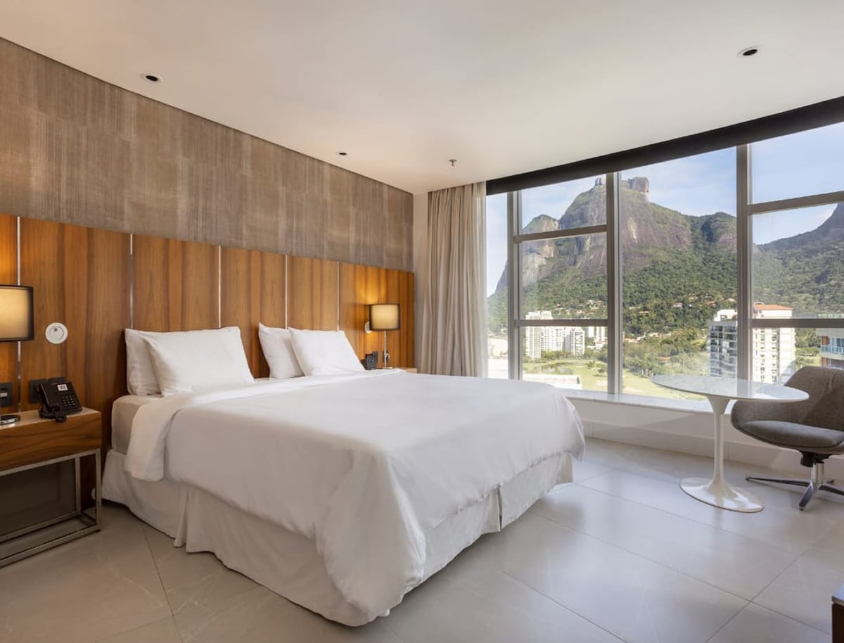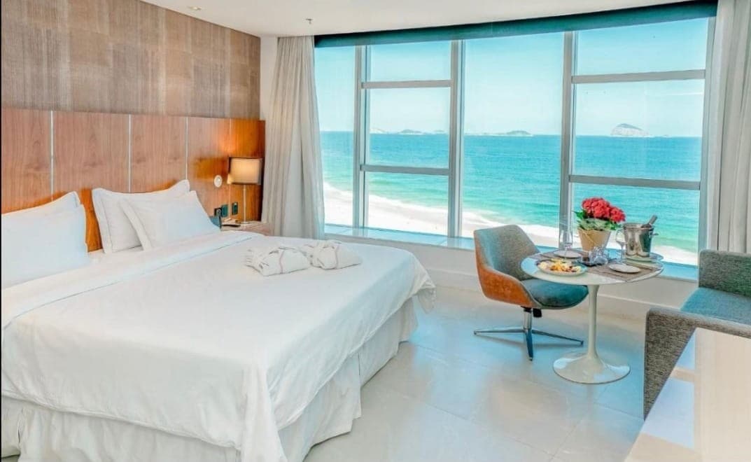Hospede-se no Hotel Nacional, em uma suíte luxuosa com cama king size e espaço para até 4 pessoas. Desfrute de uma vista incrível para o mar de São Conrado e relaxe com toda a comodidade e estilo que você merece. Perfeito para férias em família ou momentos especiais. Reserve agora!