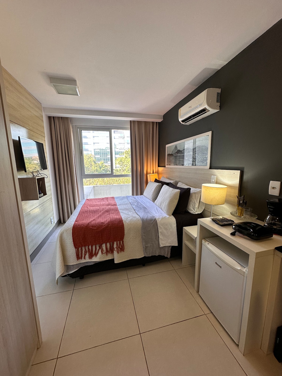 Quarto completo, vista para praia de São Conrado!