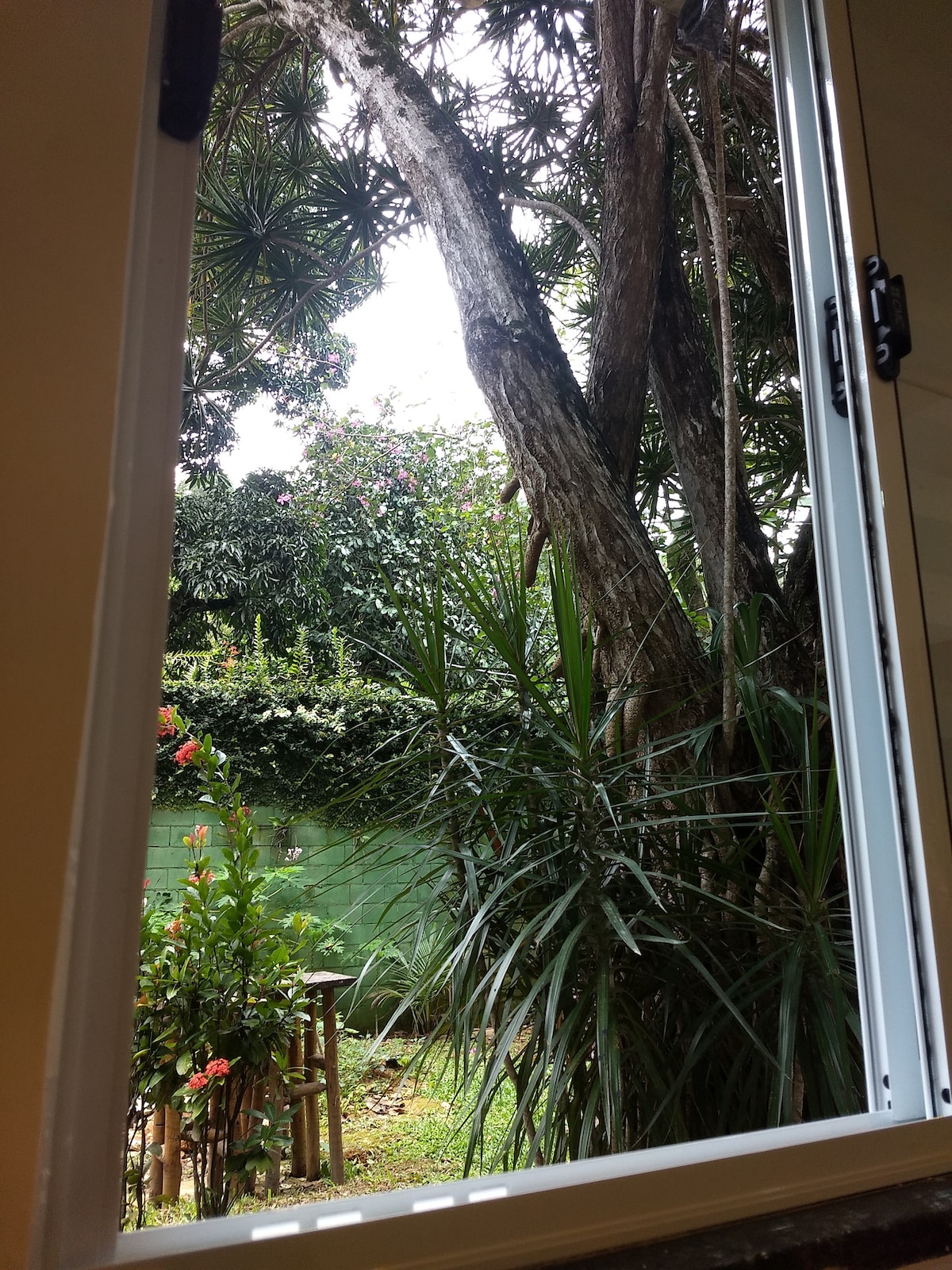 No bucólico bairro de Sta. Teresa, em muito arborizado terreno de 1000m² sobre dois níveis, no inferior se situam 2 unidades totalmente independentes que dividem jardim e piscina: Este Studio e o Ap (outro anuncio). Com vista do Cristo (Corcovado), montanha e Sambódromo (desfiles de Carnaval), estamos defronte a antiga igrejinha e ao lado de pracinha familial c/ bistrôs. Em casarão colonial e acesso independente, no platô superior residem os proprietários, sempre disponíveis para uma ajuda.