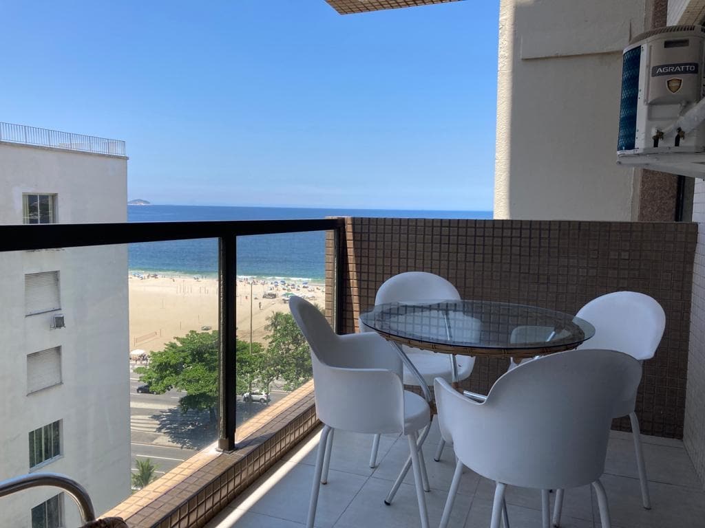 Modern & Safe Apartment in the Heart of Ipanema! Enjoy breathtaking ocean views from the balcony and bedroom in this stylish flat, up to 2 guests. Features a comfortable queen bed, sofa bed, 2 split air conditioners, smart TV, high-speed Wi-Fi, Nespresso machine, hair dryer, and a fully equipped kitchen. Located steps from Ipanema Beach, this secure and modern building offers swimming pool, sauna, gym, parking and 24h doorman service, ensuring comfort and peace of mind throughout your stay.