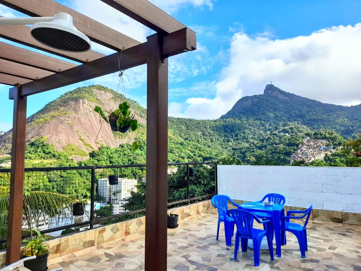 O espaço é um apartamento tipo casa, com estilo rústico, compacto mas bastante confortável e funcional. É arejado, bem iluminado, com um pátio amplo privativo, onde é possível desfrutar do sossego de uma ampla área externa, com uma vista deslumbrante que inclui o Pão de Açúcar e Cristo Redentor. O pátio é um espaço privilegiado para observar a paisagem cultural urbana do Rio de Janeiro e sua forte relação entre homem e natureza.