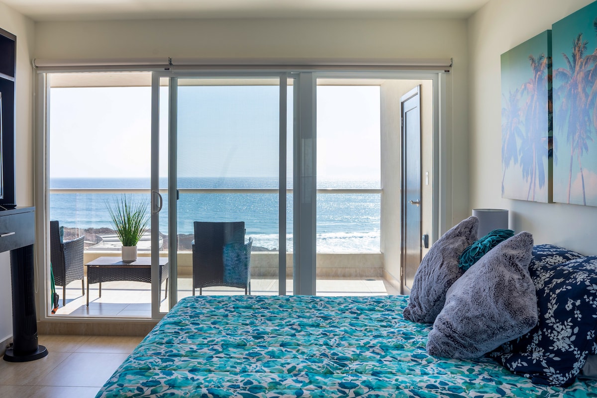 GORGEOUS OCEAN FRONT home at the brand new luxury gated community "La Jolla Excellence". With exclusive access to Playa Encantada as well as 3 pools (indoor heated and outdoors), dry saunas and jacuzzis. Be ready to feel the ocean breeze and watch the sunset from the spacious balcony with waterfront view. Located a short 5 minutes drive from Downtown Rosarito and only 30 minutes away from the USA border, we invite you to visit us for a wonderful beach holiday.