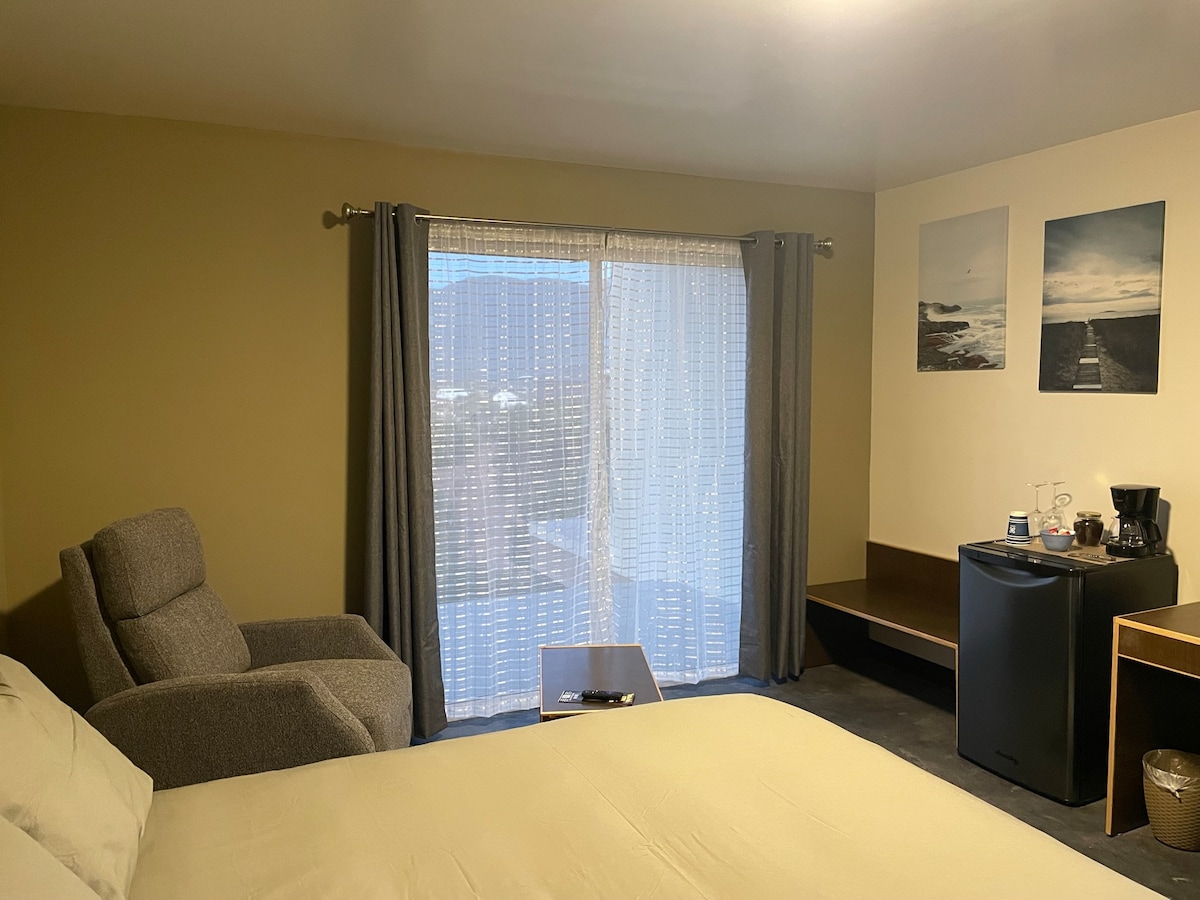 You will love this queen room & private bathroom. Includes a very comfortable bed w/fridge next to our large ocean view/lounging patio. Only 100 yds from the beautiful 10 mile long beach in front of you. With easy access to all patios and facilities. Including strong WIFI, bar, gym, pool & jacuzzi. Security parking on site. Close to all Ensenada has to offer like the wine valley, Buffadora, malecon, and downtown. With 50 restaurants in walking distance you have found your home away from home