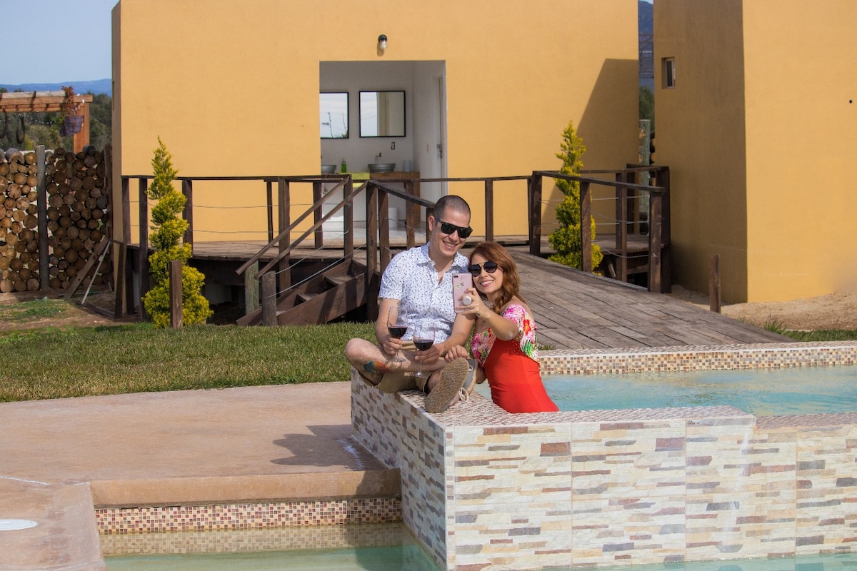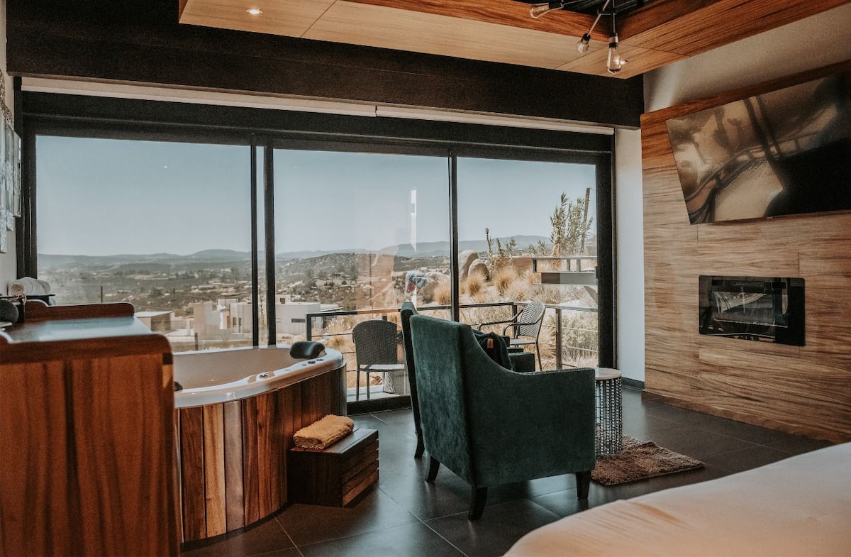 Enjoy our private penthouse at Hotel Boutique, Valle de Guadalupe. Surrounded by mountains, vineyards & nature. Our place here is a perfect to relax & get inspired. Here you have everything: Restaurant " Fuego", for breakfast, lunch & dinner. Access to hotel pool area and Lounge. Luna de sol, a Beautiful Spa with all amenities. Equitarius- for horseback riding, also visit the garden, an organic orchard.