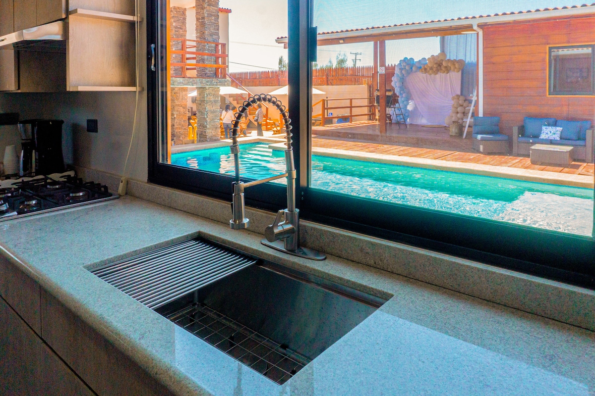 Casa de descanso en la ruta del vino, ideal para pasarla bien con la familia y amigos, a 25 minutos Del Valle de Guadalupe y a 15 minutos del pueblo mágico Tecate. Te encantará el clima , el área está perfecta para explorar , hacer hicking, si tienes algún evento en los viñedos la distancia es muy corta, caminatas familiares. Ven y disfruta de la tranquilidad de nuestro espacio.