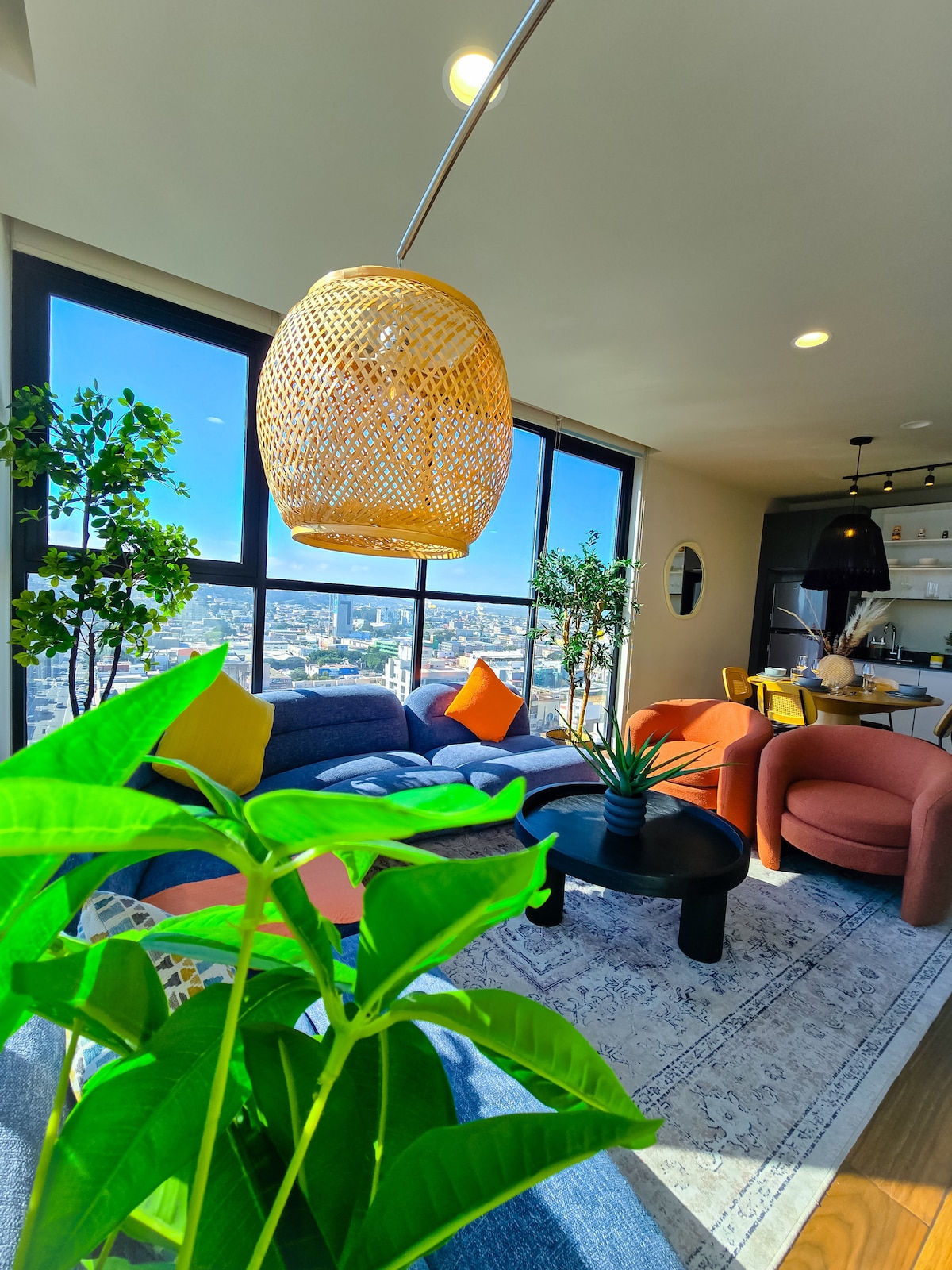 Disfruta de una experiencia con estilo en este alojamiento ubicado a 10 min del cruce internacional en auto, a 10 min de la zona turística caminando. Con vistas al centro de Tijuana. Cercano a cafés y restaurantes de la zona. Cómodo y seguro para caminar, con seguridad interna las 24 horas. El departamento cuenta con dos balcones y excelente iluminación, ventanas de piso a techo con persianas blackout para más control de la iluminación.
