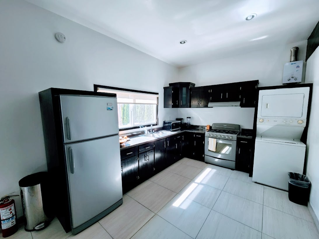 Ubicada en la Ruta del Vino, nuestra casa de dos plantas ofrece tranquilidad y comodidad. Con 3 habitaciones en la planta baja, estudio y 2.5 baños, y 2 habitaciones pequeñas con baños en la planta alta, es para parejas o familias que buscan un descanso. Tenga en cuenta que la cochera, invernadero , almacenes y el vestidor de la recámara principal son áreas restringidas. No se permiten fiestas ni eventos. Se pueden estacionar los vehículos en el patio de la propiedad. ¡Disfrute de su estancia!