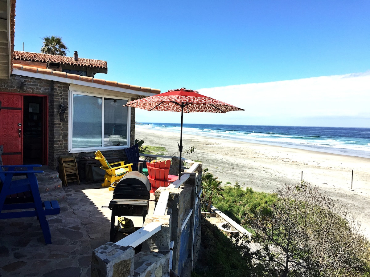 Build by renown Nobel price winner Richard Feynman Casita Barranca is sitting on a cliff overlooking the Pacific Ocean. It has a private stairway, from two intimate ocean front patios, allowing access to a sandy, solitary beach. At Casita Barranca, you are only a few steps from one of the best beaches in Baja California, Mexico. Walk in the surf, sunbathe, dig for clams, fish, build sand castles, swim, surf or ride horses on the house's isolated and romantic beach.