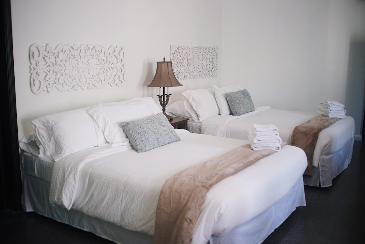 Una experiencia mágica que te tranporta a un ambiente sereno y encantador. La propiedad cuenta con una casa de huéspedes de dos cuartos con una cama king y dos camas queen. Hay dos baños completos y cocina completamente equipada. Aunque forma parte de la casa principal, la propiedad es completamente independiente. También cuenta con jardines y muchas áreas para comer y relajarte. Queda a 10 minutos caminando de la playa y está cerca de mercados, hospitales y cines.