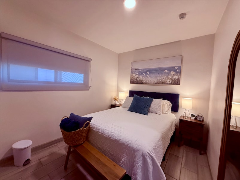 Disfruta la comodidad de este alojamiento Nuevo, tranquilo y muy céntrico. Estupenda vista y magnifica ubicación a solo 5 minutos de la frontera México-USA. A tan solo unas calles de la vibrante Av.Revolución. A pocos pasos de restaurantes, vida nocturna y consultorios médicos. Cuenta con 1 recámara (1 cama Queen + colchón inflable), 1 Tv 50” con aplicaciones: HBO, Netflix, MLB. Utensilios de cocina, lavadora, secadora y plancha para ropa, secadora de cabello. Parking gratuito con seguridad 24/7