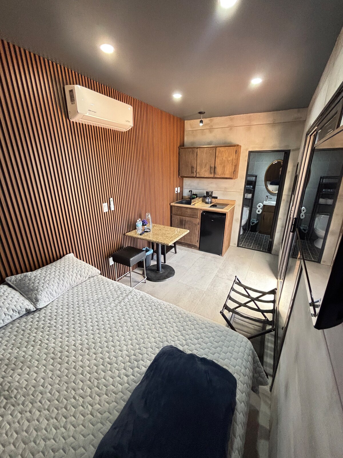 Fracción B This Container Loft located between the tourist area and the local center offers you everything to enjoy the city. Walking distance: 1 block from the Park 2 to 4 blocks from bars, restaurants and coffee shops 2 to 4 blocks from Banks (Banamex, BBVA, Scotiabank, HSBC, Banorte and Santander) 3 to 4 blocks Services (Dry cleaning, beauty salon, copy center, convenience store...)
