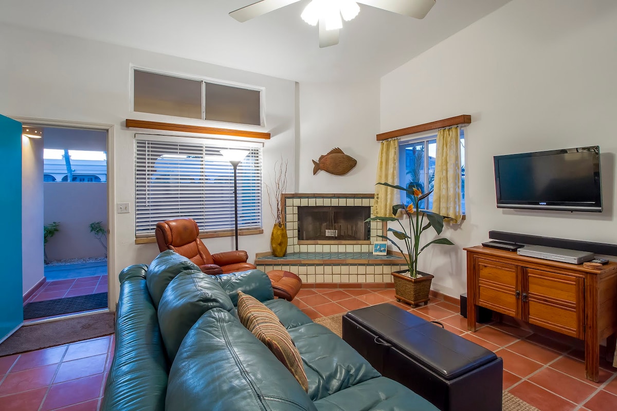 Part of La Paloma Del Mar Beachfront Estate, Casa Fiesta is a 2 bedroom / 2 bathroom free standing guest home just 30 steps to the beach. This Las Conchas beach house includes a private courtyard, living room with vaulted ceilings, fireplace, a well stocked kitchen, private tennis/basketball courts and more. Sleeping accommodations include 1 King and 1 Queen size bed. (all properties are no smoking and no pets ) Plenty of parking in front of the casita as well as a private patio with BBQ grill