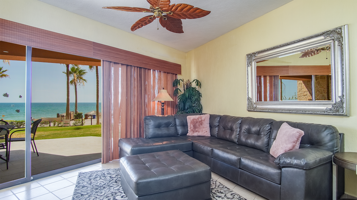 Este es el escape perfecto a la playa para una pareja o una familia pequeña. Este espacioso depa está en la playa con un balcón privado y vista directa al mar. Cómodamente acomoda 2 personas, con una ocupancia maxima de 4 personas (2 personas dormirán en sofacamas individuales en la sala). Tiene una recamara con 1 cama Queen, una sala con vista al mar, con dos sofacamas, tv, mesa, sillas. OJO! Este depa NO tiene cocina; si tiene refrigerador, microondas y cafetera. No mascotas.
