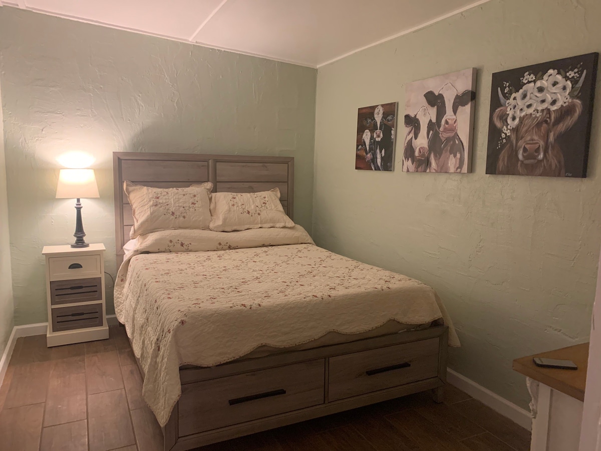 With its elegant design, secluded location, and 1-bedroom, 1-bath, ‘Starry Night Guest Retreat’ is the perfect cozy vacation rental! Start your days off by relaxing on the patio and admiring the views of the Mustang Mountains. When it’s time to explore, head to Deep Sky Winery for a glass of wine, try out some nearby birdwatching, or enjoy the farm animals grazing the meadow. Finish your stay with a visit to the old town of Tombstone and Kartchner Caverns State Park to see all that Elgin offers!