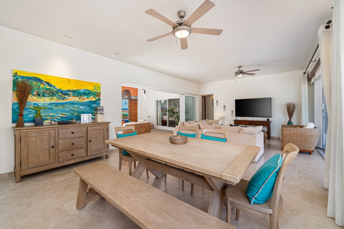 Looking for a relaxing getaway to Cabo? Quinta Pacífica is your spot! This two bedroom condo is in a beautiful gated community of only 16 townhouses with two fantastic family friendly pools. And the best part? It's just a few steps from the beach, San José del Cabo's hotel strip and downtown. Enjoy walking in the area, relaxing in it's spacious terrace with gorgeous view of Vidanta's Golf Course, or just sit back and listen to the ocean breaking waves at night. Book 6 nights and get 1 FREE!