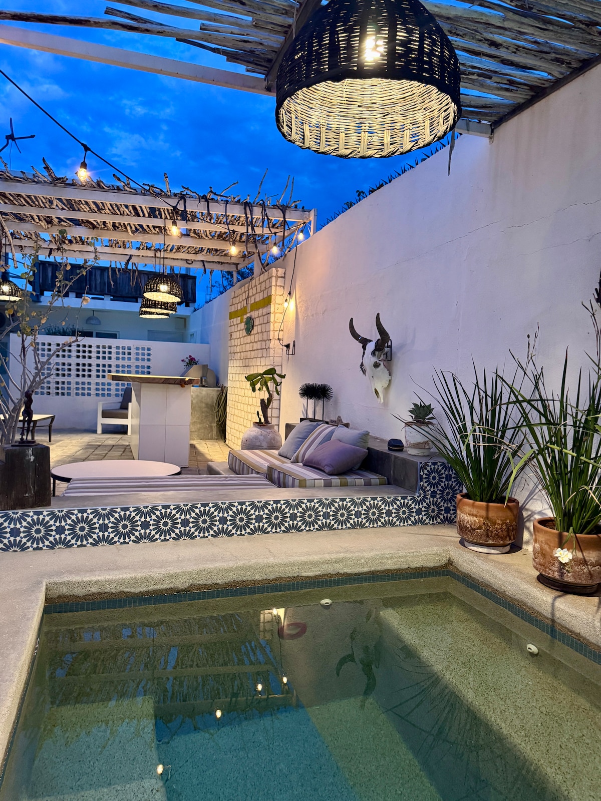 Unplug in a quiet, adults-only style casita for 2 near the beach. A/C, Wi-Fi, TV, plus shared kitchen, plunge pool, lounge areas, and outdoor dining. A 10-minute drive to Los Barriles, with easy access to Costa Palmas, Cabo Pulmo, Santiago, El Triunfo, kiteboarding, fishing, and thermal spa areas. Day-pass access nearby. Vehicle strongly suggested.