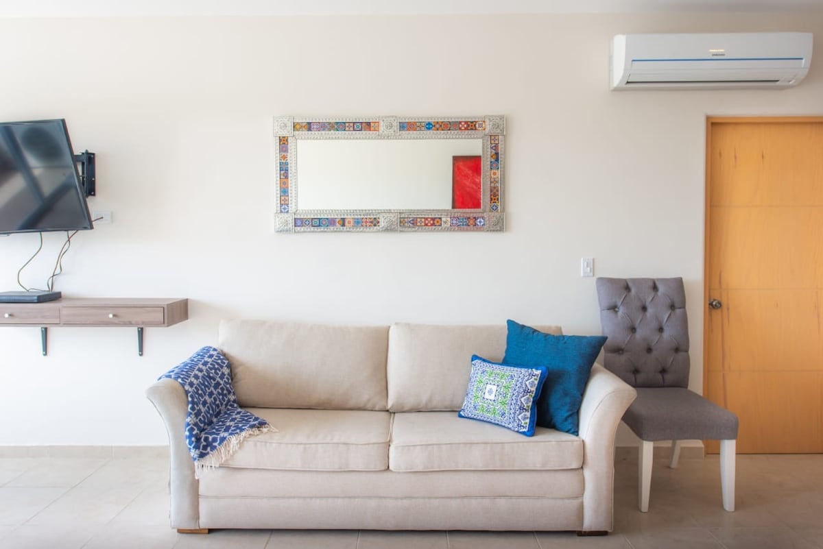 It doesn´t get any closer to Playa Los Cerritos! Our condo is a spacious suite with a beachfront terrace to check out the surf or enjoy one of the most beautiful sunset in Baja. The space has everything you need to live on the beach: - A master bedroom and two bathrooms. - One King size bed for your comfort. - A couch in the living room for the little one or the thrifty friend that you love. - A Kitchen to prepare the catch of the day. There are also 2ACs (in the living room and the bedroom)