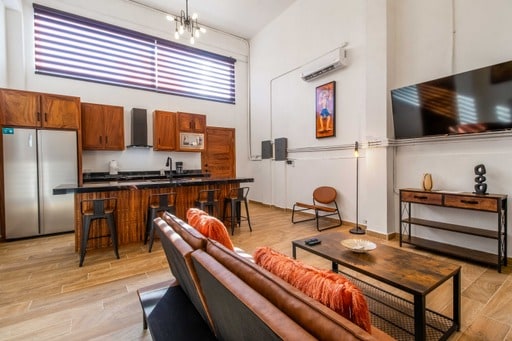 Enjoy a stylish experience at this centrally-located place. Close to San Jose downtown. 1.5 mil from el Ganzo. 3 min away from the main attractions. 4 blocks away from the ocean. This place is a true gem. 5 markets and food places all around. WE suggest a car as distances can be far at time. But to explore Cabo it’s better by car. NO PARKING space inside the property,but street parking it’s allow and safe.
