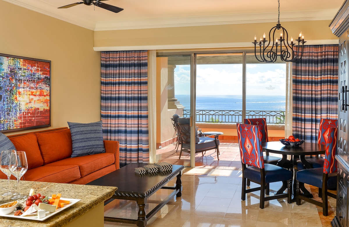 When you book your vacation at Pueblo Bonito Rosé you receive not just a beautiful place to stay but a multiple-resort vacation experience with outstanding service & amenities, fun activities and delicious dining options. The Junior Suite is an oversized studio of more than 540 square feet of indoor/outdoor space and has a comfortable sitting area with table and chairs, two double beds or one king bed, a fully accessorized kitchenette with service for four, and a large bathroom with shower.