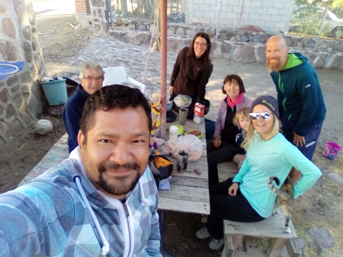 Nestled in the stunning oasis of Todos Santos, our eco-friendly house is just a 10-minute walk from the beach. This beautiful casita in La Cachora is designed with natural harmony in mind, featuring open living spaces and exquisite handcrafted woodwork that create a soothing atmosphere. It’s the perfect place to relax and recharge after exploring all the amazing attractions Todos Santos has to offer. Plus, you’ll be greeted by our adorable pups, who will make your stay even more special!