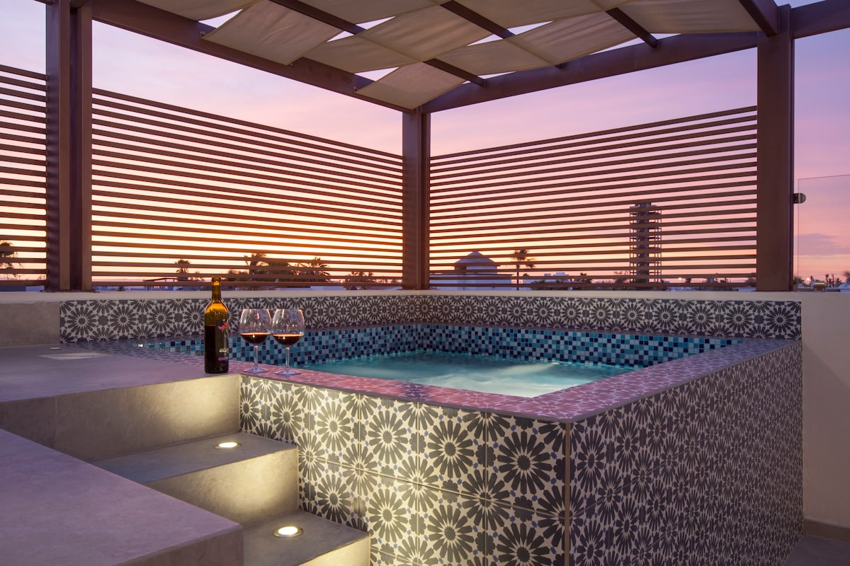 豪华公寓,带加热屋顶泳池,可欣赏海景和拱门景观