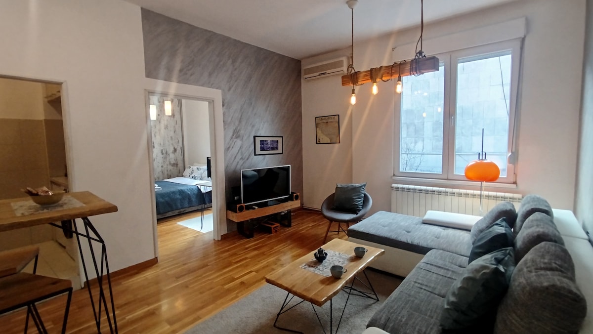 Stylish and cozy apartment in the heart of Skadarska str. (Skadarlija bohemian quarter) 48m², dinning room-kitchen, living room and separate bedroom), ideal for exploring the old town of Belgrade. Our apartment is fully equipped for your short and long stays weather you stay only for a leisure or for business as well. Stay in the center of old town and feel the best vibe. You will fall in love with neighborhood!