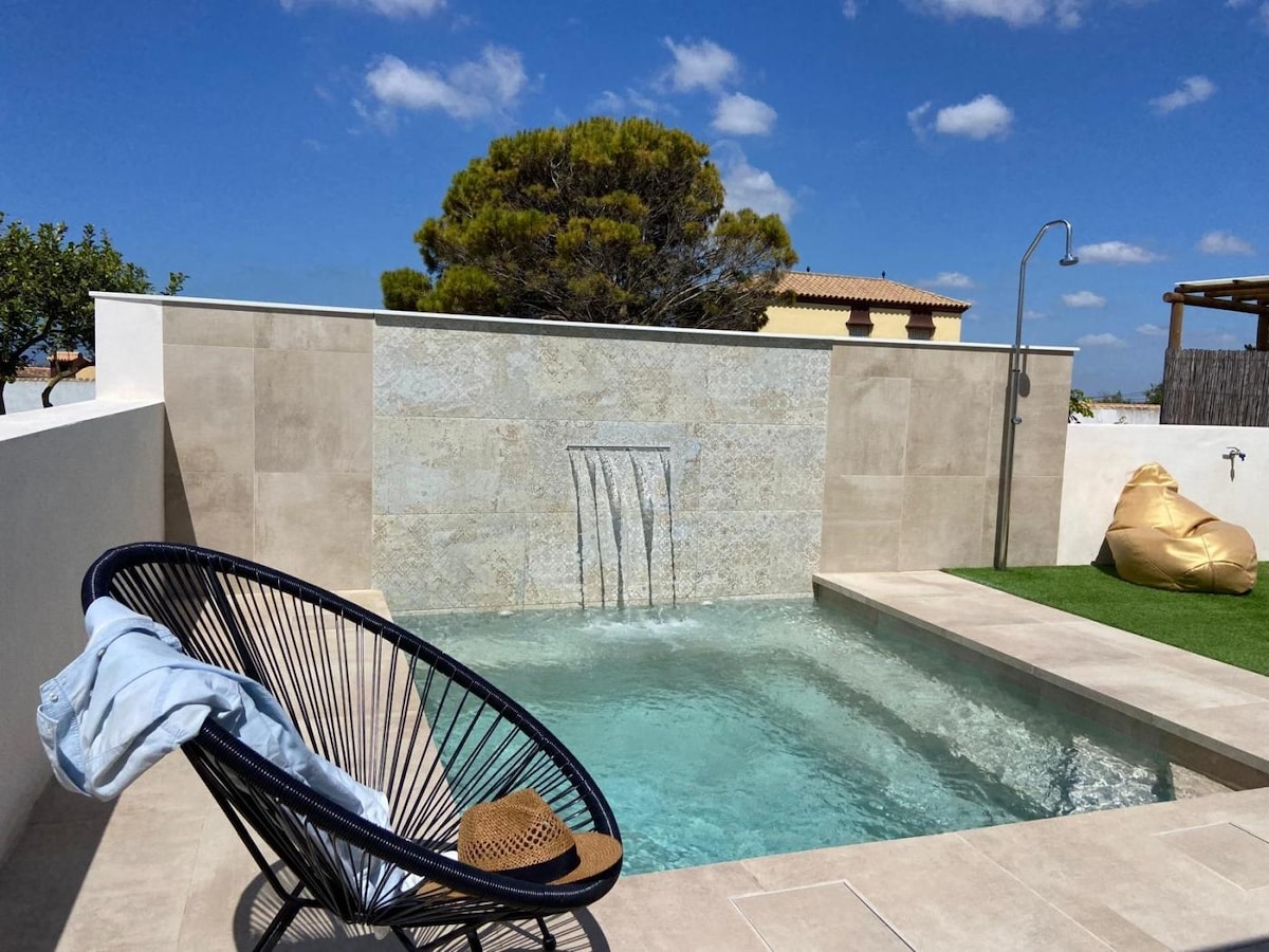 Apartamento en Chalet piscina y parking. Todo en exclusiva y completamente privado para los huéspedes. Dispone de wifi,aire acondicionado, lavavajillas,horno,microondas,cafetera, tostadora,secador del pelo,mesa de billar,smart tv,diana, juegos de mesa, juegos de playa… Supermercado y farmacia a 5 min andando. Playas a 10 min en coche. Parque acuático a 3 min. Máximo 4 personas. Cama de matrimonio y sofá cama. Posibilidad de cuna de viaje y trona de bebé. Se aceptan mascotas.