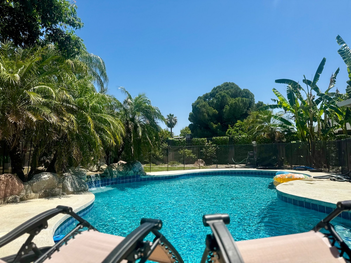 Located in a quiet, beautiful NW Bakersfield neighborhood, this is a great spot to relax! Your stay includes use of the HEATED pool and spa - AT NO EXTRA CHARGE! There are tv's in every room, and plenty of places to lounge! It also has a well-equipped kitchen and dining room, two living spaces, and a pool table in the garage. And don't let us forget to mention the excellent wifi and brand new a.c. unit! Two-night minimum stay.