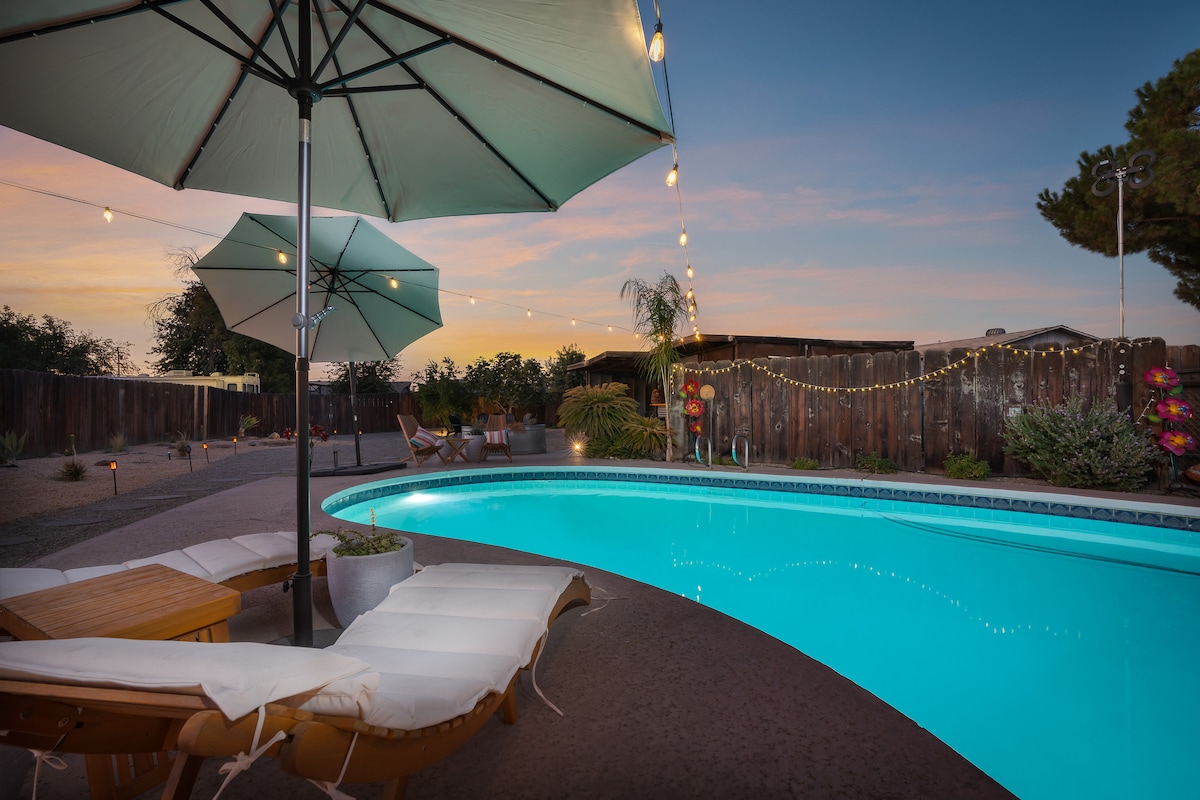 Welcome to your vibrant Boho oasis in Bakersfield! This beautifully remodeled three-bedroom home features an inviting open-concept living space electric decor with espresso bar. The expansive backyard boasts a huge pool, fire pit and tiki bar perfect for sun-soaked days relaxing by the pool. Each bedroom offers unique charm, ensuring comfort for all guests. Conveniently located off Calloway, you’re minutes away from the city's hottest spots. Enjoy relaxation and fun in this colorful retreat.