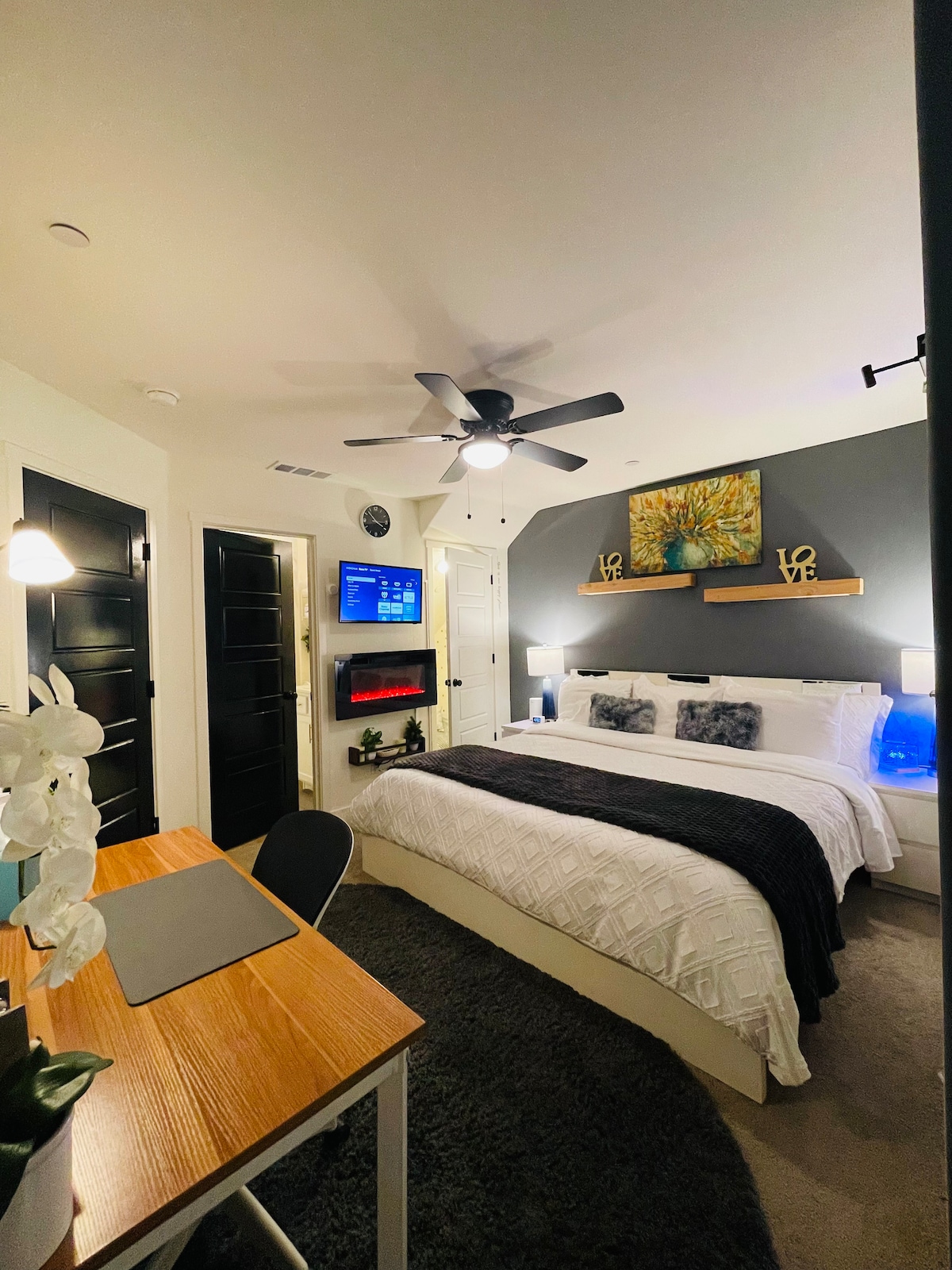 Warm and inviting suite with its own private entrance and your peaceful Independent space to unwind. Comfortable luxurious king bed and 2 plush sofa bed couches. High end decor, Clean, safe and quiet environment to work or have a comfortable relaxing stay design with all the essentials you need. It’s just home away from home. Parking on premises. 10 mins to I-99 and I-5 Hwy. Shops and restaurants 4 minutes drive away, Walking distance to Starbucks, chipotle, Jimmy John’s, frame broiler etc